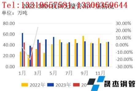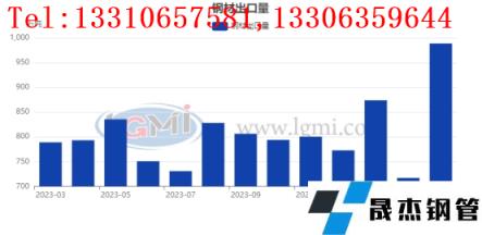 圖32023年—2024年我國午夜十八禁鋼管出口走勢圖