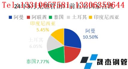 分國別來看,3月份我國無縫管的主要流向國家為阿曼、阿聯酋、泰國、土耳其、印度尼西亞,占本月出口總量的比重分別為10.98%、8.58%、8.12%、6.33%、5.69%,上述國家出口總量占本月總出口量的39.7%。由此可見,本月無縫管出口國別流向已趨於明顯,2024年國別流向或更加明顯,亞洲、非洲、歐洲國家成為我國無縫管出口的主要根據地,中東地區國家需求仍保持韌性,美洲的需求有所下滑。
