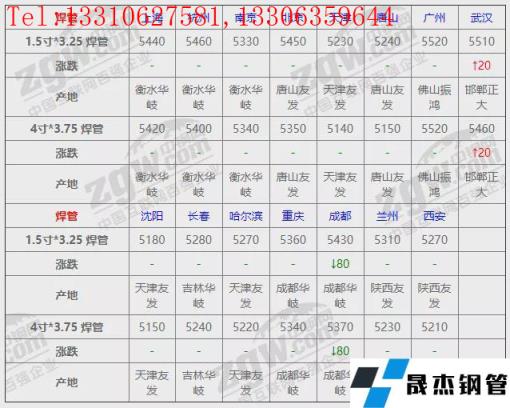 全國15個主要市場4寸*3.75 焊管平均價格5303元/噸,較上個交易日下調4元/噸。