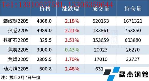 免責聲明:本網站(山東聊城午夜黄视频無縫鋼管廠www.bl-lenscare.com)刊載的“2022年02月07日午報:鋼價全線上漲,鐵礦石期貨漲逾3%”等均源於網絡,版權歸原作者所有,且僅代表原作者觀點,本文所載信息僅供參考。轉載僅為學習與交流之目的,如無意中侵犯您的合法權益,請及時聯係刪除。本網站刊登此篇文章並不意味著本站讚同其觀點或證實其內容的真實性,午夜黄视频不對其科學性、嚴肅性等作任何形式的保證。如果侵犯了您的版權,請盡快聯係午夜黄视频予以撤銷,謝謝合作!