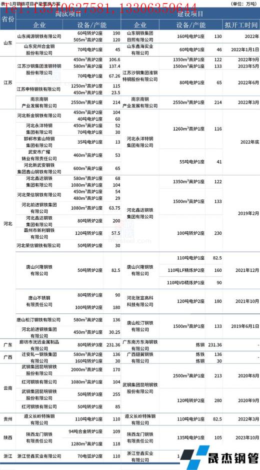 據不完全統計,2022年1月全國15家無縫午夜十八禁鋼管廠家發布鋼鐵產能置換方案,涉及新建煉鋼產能1613.36萬噸,新建煉鐵產能1322萬噸;涉及淘汰煉鋼產能超1975.65萬噸,淘汰煉鐵產能2030.5萬噸。