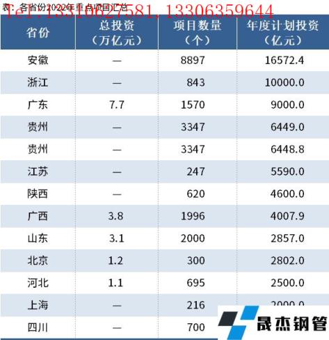 據不完全統計,截至2月16日,廣東、江西、江蘇、北京、上海、貴州、山東、浙江、四川、廣西、陝西、河北、安徽等13個省份發布了2022年重點項目投資計劃清單,上述清單中合計共24778個項目,年度計劃投資額合計超7.28萬億元(不包含四川)。