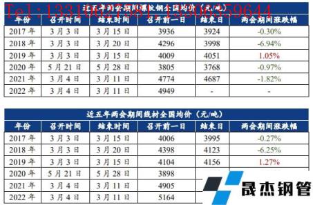 3月4日和5日,全國政協十三屆五次會議和十三屆全國人大五次會議先後在北京開幕。整理了過去五年兩會期間建築午夜十八禁無縫鋼管價格和庫存的數據變化。