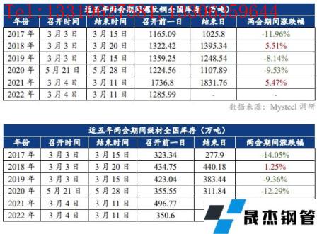 近五年建築午夜十八禁無縫鋼管庫存走勢稍顯分化,2018年和2021年兩會後庫存都有增量,螺紋鋼基本在5%左右,線材在1.5%左右;而2017年、2019年和2020年都有所下降,螺紋鋼庫存降幅在10%左右,線材降幅在13%左右。今年和往年“兩會期間”相比庫存也處於平均線下的低位。