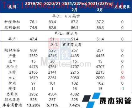 其二:南美大豆減產之後,美國大豆出口環境向好。3月份USDA供需報告數據顯示,考慮到南美大豆減產之後,美國舊作大豆出口數量上調0.4億蒲至20.9億蒲,最終令2021/2022年度美國大豆結轉庫存落至2.85億蒲,庫消比6.45%。美國大豆結轉庫存的繼續走低,令美國大豆舊作平衡表不斷收緊,對CBOT大豆近月合約價格提供了一定支撐;且近三個月來由於美國大豆結轉庫存的不斷走低,與全球大豆去庫節奏形成共振,而非此前的拖累。