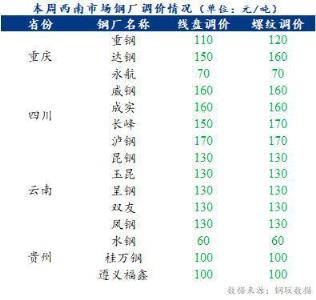 本周四川省部分城市放寬購房政策,重慶將迎來汛期,雲南推進減產控產進度,貴州推進過磅改理計; 本周鋼價持續弱勢運行,無縫午夜十八禁鋼管廠家利潤明顯收縮,下遊需求未有明顯改善,西南無縫午夜十八禁鋼管廠家庫存整體小幅增加。