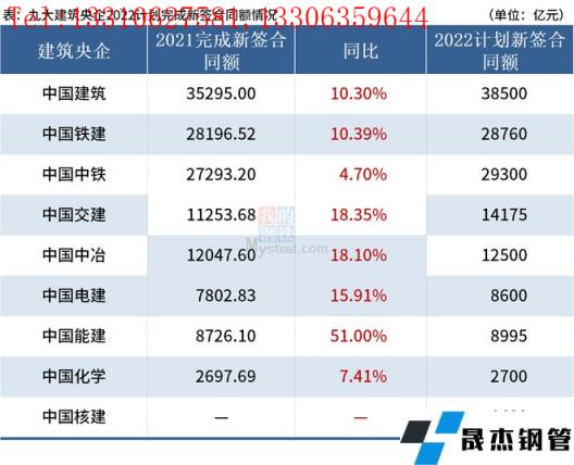 根據資料,這9家建築央企2021年合計完成營業收入61602億元,2022預計完成營業收入65780億元;2021完成新簽合同額13.33萬億元,2022年預計完成新簽合同額14.49萬億元;一季度完成營業收入16700億元,約占年度計劃25.4%。