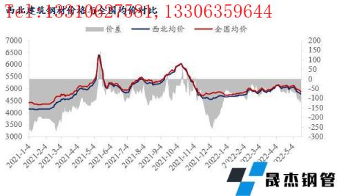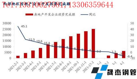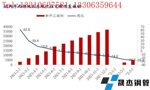 2022年以來,從上圖可以看出來,受住房不炒政策受影響,西北區域各省市房地產開發進度緩慢,房地產開發企業投資完成額以及新開工麵積同比均是小幅下降。分省市來看,陝西作為西北經濟龍頭老大,房地產開發投資表現較好。2022年一季度,陝西省房地產開發企業完成投資674.03億元,同比增長5%,比1-2月提高1.8個百分點。而甘肅區域,一季度GDP同比增長5.3%,固定資產投資同比增長12.9%。其中,項目投資增長13.4%,房地產開發投資增長11.7%,商品房銷售麵積下降10.7%。另外如分別是寧夏區域房地產開發投資增長增速為-1%。這在去年寧夏區域房地產開發投資增速為正數,今年麵臨較大下行壓力。整體來說,由於受疫情以及資金問題,工程項目進度不如預期,午夜十八禁無縫鋼管需求量同比減少,這也是前期西北區域建築午夜十八禁無縫鋼管消化緩慢以及庫存積壓原因。