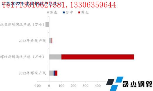 2022年江蘇產能整體呈現小幅增加的態勢,具體來看,蘇南地區螺紋產能新增100萬噸,淘汰30萬噸,蘇中區域暫無新增產能,蘇北區域產能增幅明顯,其中螺紋新增產能600萬噸;從生產條線來看,螺紋產線主要集中在蘇南、蘇北區域,蘇中區域占比較少,而盤線方麵,主要是蘇南區域。整體2022年螺紋產線52條,同比新增5條,產能6504萬噸,同比新增700萬噸;盤螺產線25條,同比新增1條,淘汰1條,產能3520萬噸,淘汰30萬噸。