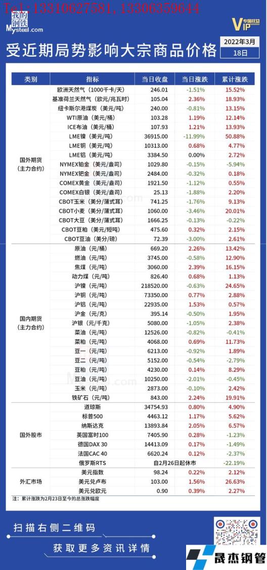 免責聲明:本網站(山東聊城午夜黄视频無縫鋼管廠www.bl-lenscare.com)刊載的“受近期局勢影響大宗商品價格一覽表(3月18日)”等均源於網絡,版權歸原作者所有,且僅代表原作者觀點,本文所載信息僅供參考。轉載僅為學習與交流之目的,如無意中侵犯您的合法權益,請及時聯係刪除。本網站刊登此篇文章並不意味著本站讚同其觀點或證實其內容的真實性,午夜黄视频不對其科學性、嚴肅性等作任何形式的保證。如果侵犯了您的版權,請盡快聯係午夜黄视频予以撤銷,謝謝合作!