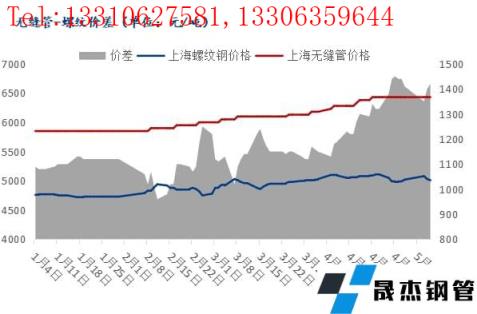 今年以來,國內無縫管價格不斷走高,在近幾個月中的階段性調整中始終保持堅挺運行。以上海市場價格為例,截止5月7號上海市場108*4.5mm主流無縫管價格為6430元/噸,2月、4月出現兩波明顯的上漲行情,進入5月價格開啟震蕩調整行情。通過對比上海地區無縫管與螺紋價差,午夜黄视频可以發現兩個品種間的價差處於擴張區間,108*4.5mm無縫管與20mm螺紋價差從年初的1090元/噸擴大到1420元/噸。那麽,目前無縫管價格堅挺的主要原因有哪些?對於後期行情的參考點又在哪裏?