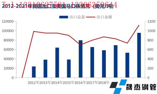 在之前的加征關稅從10%上調至25%的產品清單中就包含馬口鐵品種,2021年是近年來最大值9.5萬噸,占當年出口總量的7.04%。出口量前十位的國家分別為意大利、泰國、南非、墨西哥、美國、阿拉伯聯合酋長國、西班牙、菲律賓、馬來西亞、沙特阿拉伯,美國出口總量排第五位。但從下圖2012-2021年我國馬口鐵出口至美國馬口鐵總量情況看出,在加征關稅後對我國出口至美國的量並未發生明顯變化,雖然2020年出現了明顯下滑,主要因為當年全球疫情爆發美國多企停工停產訂單減少,而當時我國馬口鐵出口卻逆勢增長同時轉移至其他國家,2021年同比增長明顯。